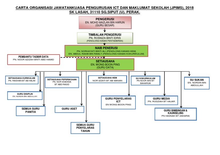 Carta Organisasi Jawatankuasa Pengurusan Maklumat Sekolah Sk Lasah 2018 Pdf